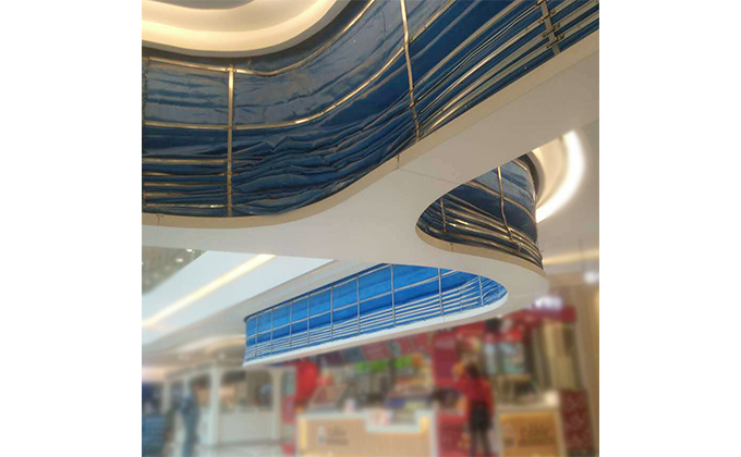 擋煙垂簾垂壁根據(jù)設(shè)計(jì)要求和現(xiàn)場實(shí)際情況采取如下施工順序:首先,搭設(shè)腳手架一放線一打眼--上脹栓一焊骨架。第二,吊件一安裝骨架…